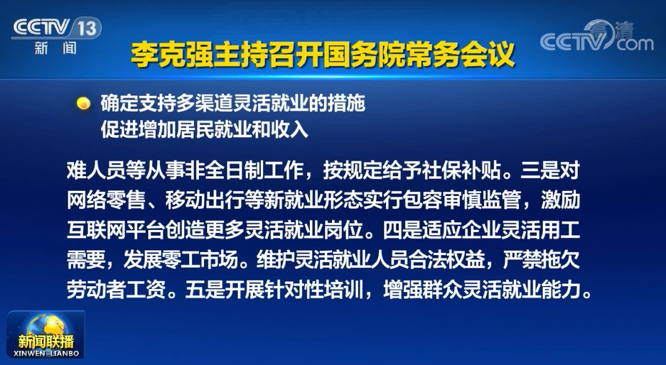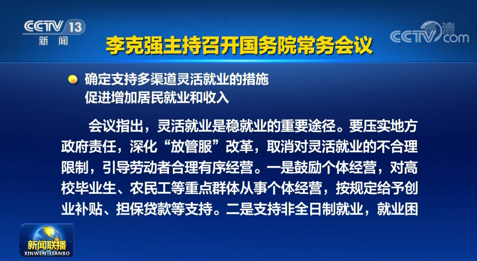 國務(wù)院會(huì )議:適應企業(yè)靈活用工需要 取消對靈活就業(yè)的不合理限制